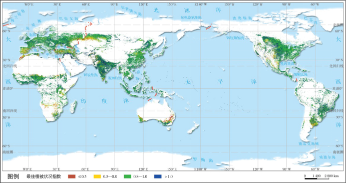 图2-4 2019年10月—2020年6月期间全球最佳植被状况指数