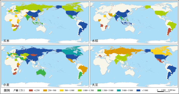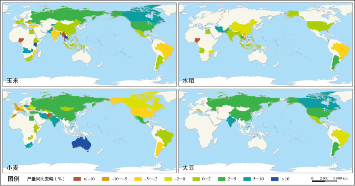 图4-1 2020年全球大宗粮油作物主产国产量(a)及同比变幅(b)