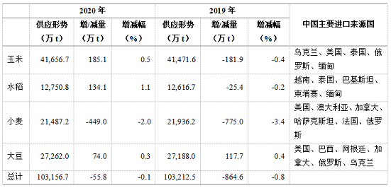 表5-4 2019—2020年中国大宗粮油作物进口来源国供应形势变化