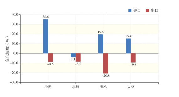 图5—13 2020年中国大宗粮油作物进出口量变化幅度(%)