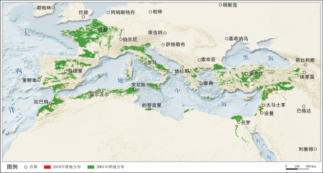 2001—2018年耕地面积减少的国家包括希腊、以色列、意大利、黎巴嫩、西班牙、葡萄牙、叙利亚,分别减少了11.0%、1.7%、2.7%、9.6%、6.3%、7.3%和20.9%。地处西亚的叙利亚是耕地面积减少最多的国家,尽管中东最重要的河流幼发拉底河贯穿叙利亚全境,为该国农业发展提供了较好的水土资源禀赋条件,但自2011年以来,该国耕地撂荒加剧,引发耕地面积持续萎缩。
